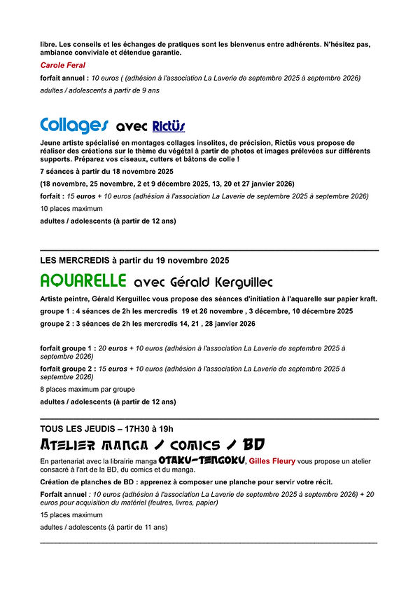 DESCRIPTIF DES ATELIERS